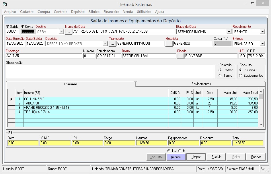 Gerenciamento e controle da movimentação de insumos, garantindo mais controle dos gastos da obra e auxiliando na redução de custos;